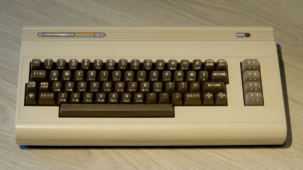 Was repaired in 1985 and got a new Kernal ROM (and maybe a new VIC).