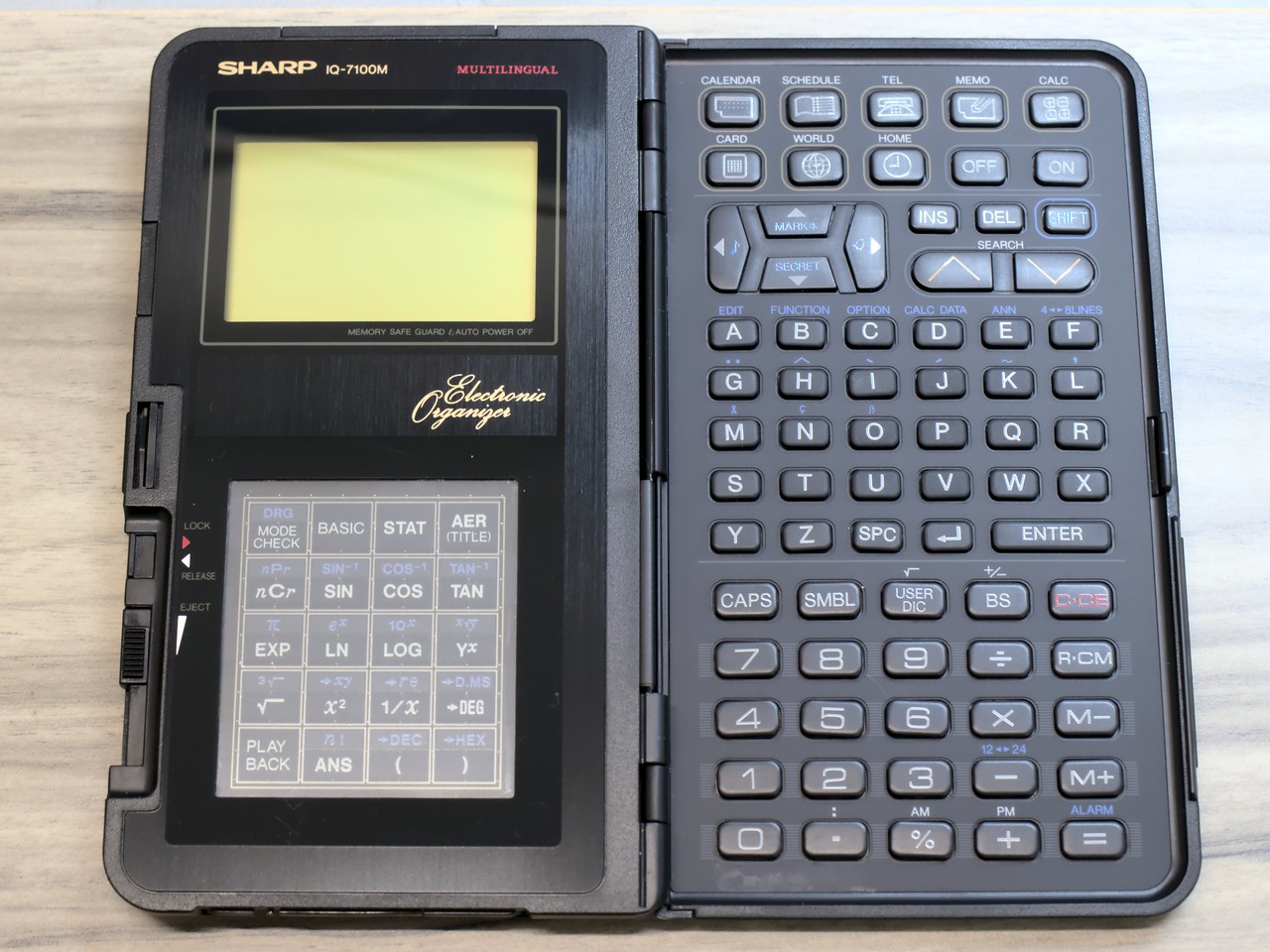 I bought a Sharp IQ-8300M in 1994. Unfortunately the synthetic leather exterior started to deteriorate after a few decades, and got sticky. I disposed the device, but kept the IQ-8B03 BASIC Card.