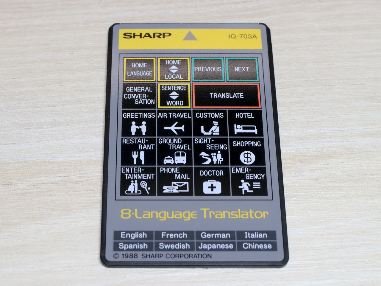 - This device came with a working 8 language translator card (English, French, German, Italian, Spanish, Swedish, Japanese, Chinese).